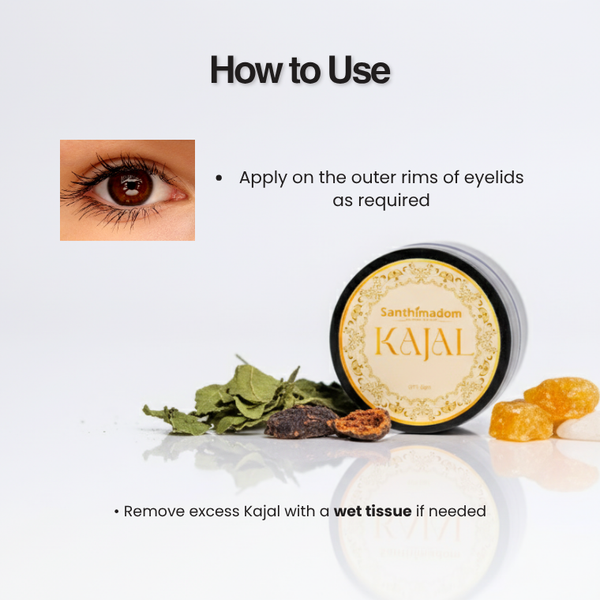 Experience the purity of 100% organic kajal, crafted with Ayurvedic ingredients like Bhringaraj, Tripahal, Beeswax(Natural wax produced by honey bees). This herbal kajal is designed for sensitive eyes, providing a long-lasting, smudge-proof finish. Perfect for daily wear, our chemical-free kajal nourishes your eyes while enhancing their beauty. Buy the best organic kajal in India online today!