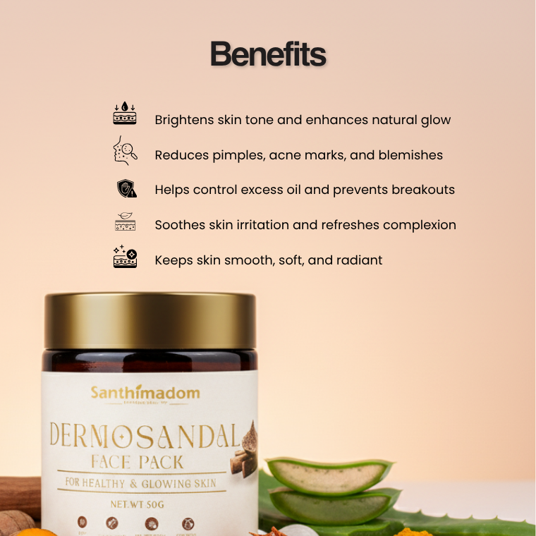Reveal radiant, blemish-free skin with Santhimadom’s Dermosandal Face Pack, a powerful Ayurvedic blend designed to remove tan, reduce pigmentation, and fight pimples. This natural face pack enhances your complexion, leaving your skin smooth, bright, and refreshed.